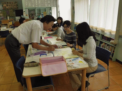 教職員研修 図工競技会 公開日 2017/08/28 更新日 2017/08/28 学校生活の部屋 8月28日(月)の午前中、前北里小学校長の永井先生を講師に迎え、図工競技会に向けての研修を行いました。実際に作品を作ってみるのが一番わかりやすいということで、じっくりと時間をかけて作品作りに取り組みました。作品を作る過程で永井先生からいろいろとアドバイスをいただいたので、それを子どもたちに指導に生かしていきたいと思います。