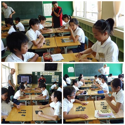 二人一組のゲーム形式で会話をしていました。ゲーム形式だと楽しく学習できる上に、発話する機会が多くなり、英語に対する抵抗が少なくなります。
