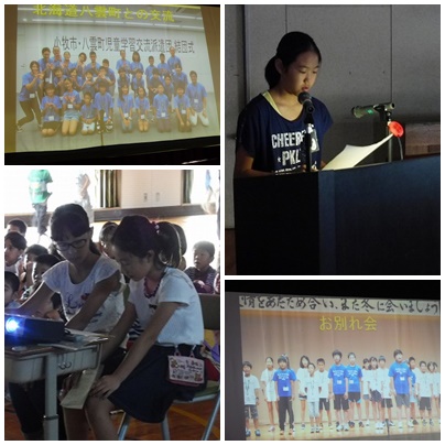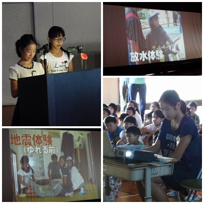 今日の集会は、夏休み中に北海道の八雲町へ学習交流に出かけた児童と消防体験に出かけた児童の体験発表をしました。どちらもスライドを使ったとてもわかりやすい内容で、全校児童の前で 堂々とした発表ができました。
