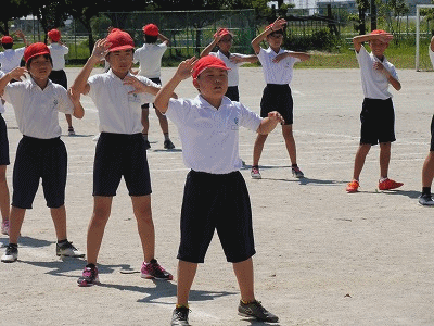 今日は天気がよかったので運動場で練習をしました。体育館ではできない隊形移動の練習もしました。