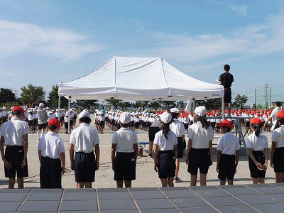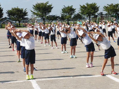 全校練習 行進・小木小ストレッチ体操 公開日 2017/09/19 更新日 2017/09/19 学校生活の部屋 台風一過の青空の下、久しぶりに運動場で全校練習を行いました。入退場の行進が、とても上手になっていました。