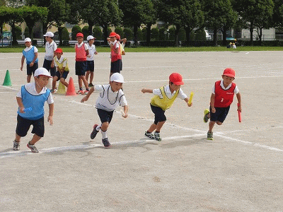 紅白リレーの選手、がんばっています! 公開日 2017/09/19 更新日 2017/09/19 学校生活の部屋 昼休みの時間を使って紅白リレーの練習が続いています。さすが、それぞれの組を代表する選手です。意欲的に練習に参加しています。