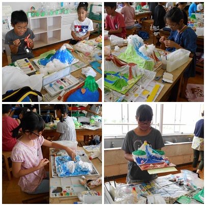 図工の様子(4年生) 公開日 2017/09/20 更新日 2017/09/20 学校生活の部屋 4年生の図工「トロトロ カチカチ ワールド」の様子です。 一人一人が自分の想像した世界を表現しています。