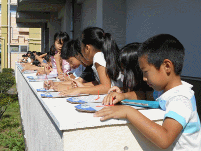 理科の様子(3年生) 公開日 2017/09/25 更新日 2017/09/25 3年生の部屋 3年生の理科「太陽とかげの動きを調べよう」で、太陽の動きの観察を行いました。 遮光プレートで太陽の位置を確認しながら、かげの位置を書き込んでいきました。