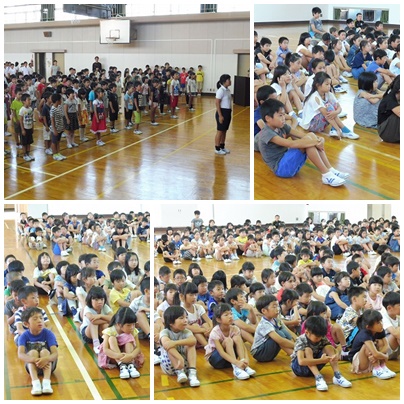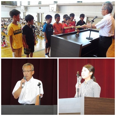 今日の朝会は、小木サッカークラブの3位入賞の表彰伝達と校長先生の話がありました。校長先生からは、今週末にある運動会に向けてそれぞれの学年に激励の言葉がありました。次に、10月2日から4週間の日程で教育実習に来る福井先生からのあいさつがありました。来週は児童の皆さんにあいさつをする機会がないので、ちょっと早いですが今日あいさつに来てもらいました。