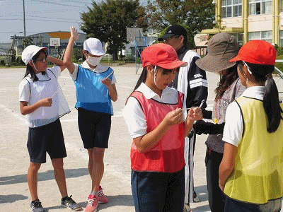 これまで昼休みの時間を使って練習してきた紅白リレーですが、今日が最終となりました。最初に6年生がくじ引きをして、レーンを決めました。そして、実際に走ってみました。