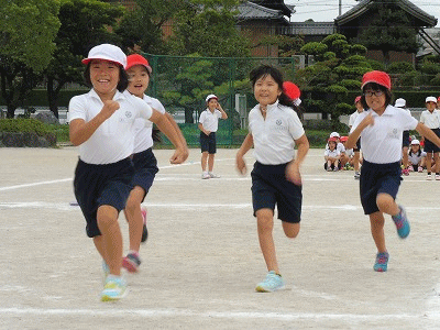 短距離走の練習 3年生 公開日 2017/09/27 更新日 2017/09/27 3年生の部屋 今日はスタートしてからできるだけ最短距離を走って、最初のコーナーに入る練習をしていました。目印になるカラーコーンをおいて、そこをめがけて走る練習です。何本も走っていましたが、子どもたちはとても楽しそうでした。