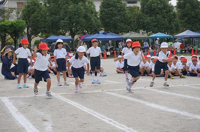 小学校に入って初めてのかけっこです。一番を目指して走りました。