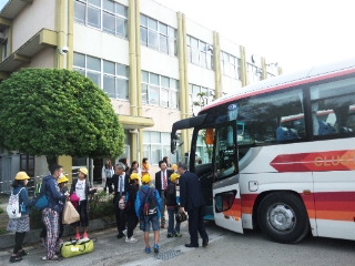 昨日と違い、とても良い天気になりました。集合時間までに全員集まることができました。みんな元気に出発です。