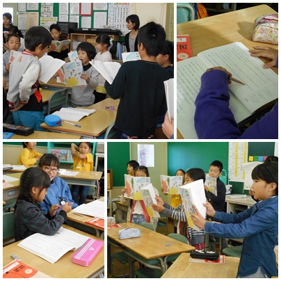 国語「ちいちゃんのかげおくり」の学習です。まずは音読、一人一人の読み方も速さも違います。子どもたちが気持ちを込めて音読しています。