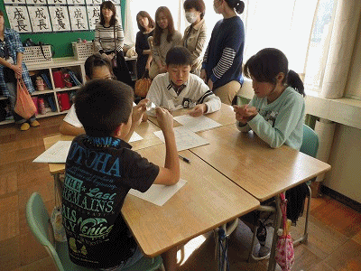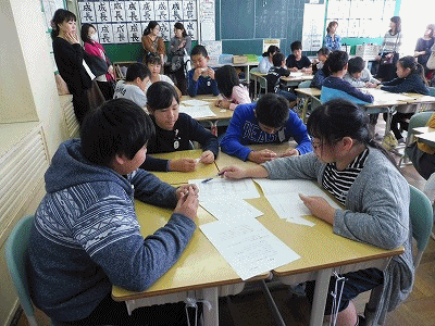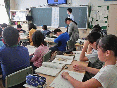 写真上:3限 国語「大造じいさんとガン」 写真中・下:4限 道徳「水族館へご案内」