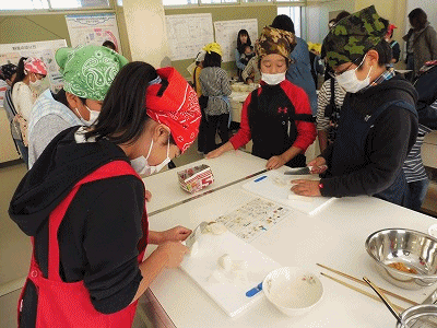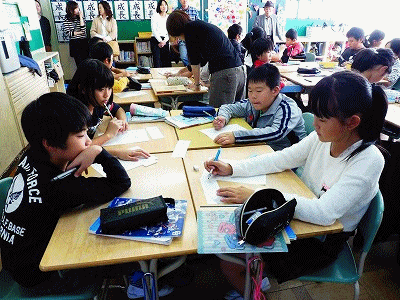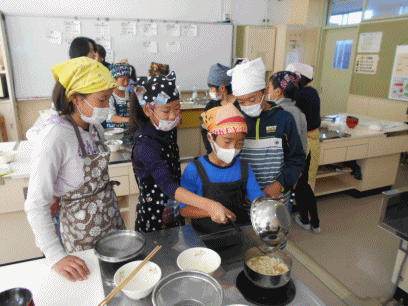 写真上・中:3、4限 家庭科「ご飯とみそ汁を作ろう」 写真下 :5限 算数「面積」