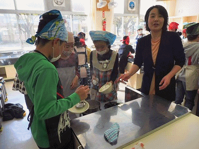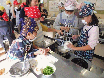 おみそ汁作りをしていました。煮干しから出汁をとった本格的なみそ汁です。味見をしなくても、香りからおいしさが伝わってきます。