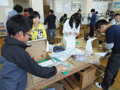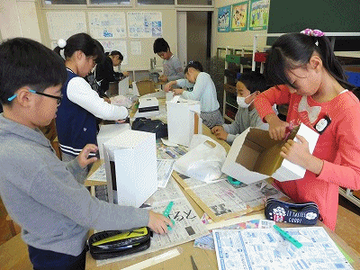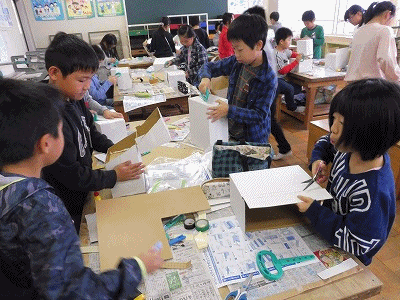 おもしろアイディアボックス 4年生 公開日 2017/11/08 更新日 2017/11/08 4年生の部屋 段ボールを使って、便利で楽しい収納用の箱を作っています。便利で使いやすい箱ができあがるといいのですが・・・?