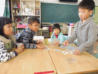 ちょっと一息 1年生 公開日 2017/11/09 更新日 2017/11/09 1年生の部屋 1年1組、5時間目の様子です。各グループごとにトランプで何をやるのか話し合って決めたそうです。七並べ、ばば抜き、それから私が知らないゲームをやっているグループもありました。