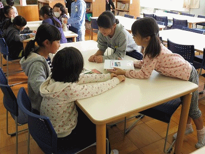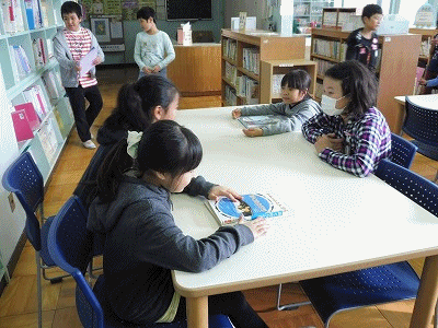 なかよし読書に向けて 公開日 2017/11/13 更新日 2017/11/13 5年生の部屋 5年生と3年生の児童が、来週月曜日のなかよし読書に読む本を、ペアの相手とともにブックランドで探していました。 5年生のお兄さんお姉さんが頼もしく見えます。
