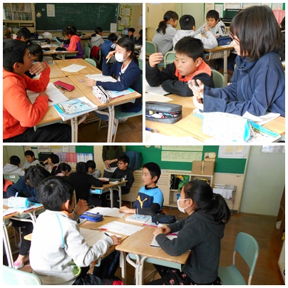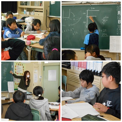 算数の様子(5年生) 公開日 2017/11/21 更新日 2017/11/21 5年生の部屋 「1mおきにならんで人文字を作ります」人文字を作るのに何人必要なのかを求めます。 いろいろな考え方で解いていきます。