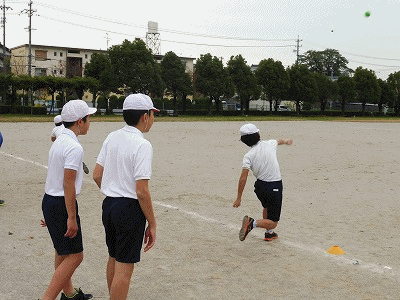 体育の授業の様子です。最近の子どもたちは、キャッチボールをしたり野球をしたりする経験が少なくなっているようです。