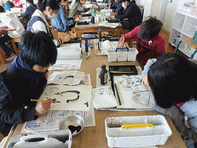 今回はそれぞれが好きな絵の模写をしていました。墨の濃淡を上手に使って表現しようとしています。