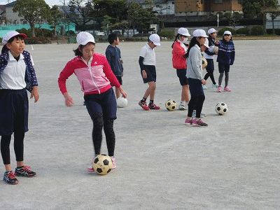 また、ボールをキープしながらドリブルするという練習もしていました。