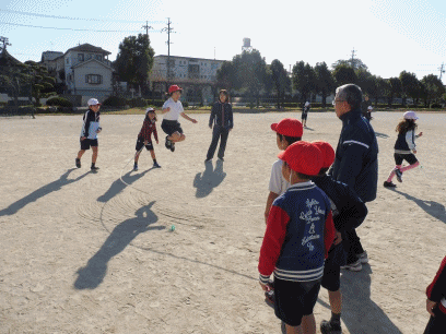 運動場で2年生がなわとび大会に向けて、八の字跳びの練習をしていました。前の人と間を開けずに連続して跳べる子が、増えてきているように感じました。