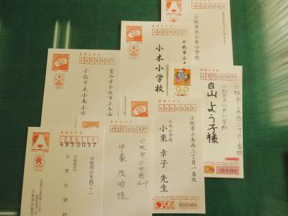 学校や先生宛にたくさんの年賀状をいただきました。ありがとうございます。