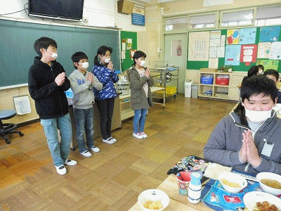 下の写真は5年2組の様子です。準備もてきぱきと行い、みんなもりもり食べて、残さいゼロでした。すばらしい!
