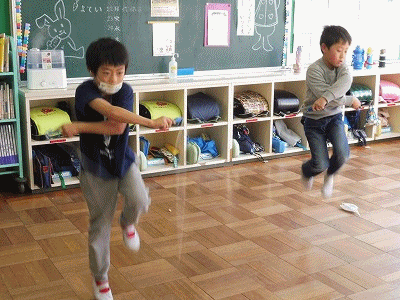 思い出発表会の練習(1年生) 公開日 2018/01/19 更新日 2018/01/19 1年生の部屋 明日の学校公開日に行う「思いで発表会」の練習をしていました。 写真は1年1組の様子です。なわとびの技を披露したり、大きな声で元気よく歌ったりしていました。