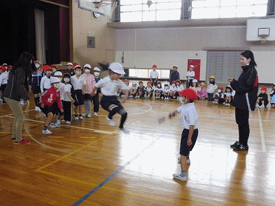 8の字跳び(1年生) 公開日 2018/01/29 更新日 2018/01/29 1年生の部屋 本番と同じように1分30秒間に何回跳べるかを数えていました。まだまだ新記録には届きませんが、1回でも多く跳べることを目標にがんばります。