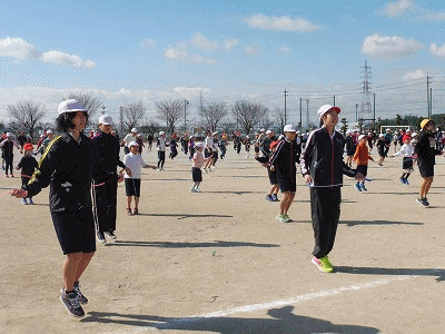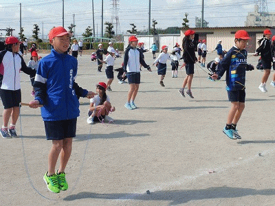 なわとび大会1 公開日 2018/02/08 更新日 2018/02/08 学校生活の部屋 開会行事、準備運動の後、短なわの持久跳びをやりました。 目標タイムは、1年生30秒、2年生1分、3年生1分30秒、4年生2分、5年生2分30秒、6年生3分です。3年生は学級閉鎖が明けたばかりなので、体調面を考慮し後日実施することにしました。 写真は開会式と持久跳びの様子です。