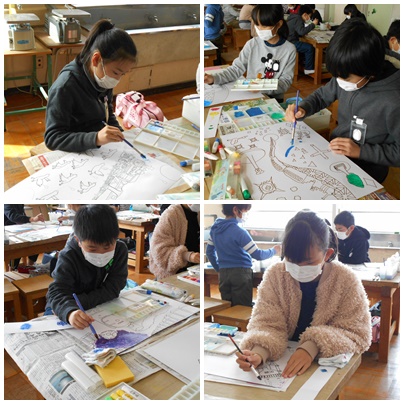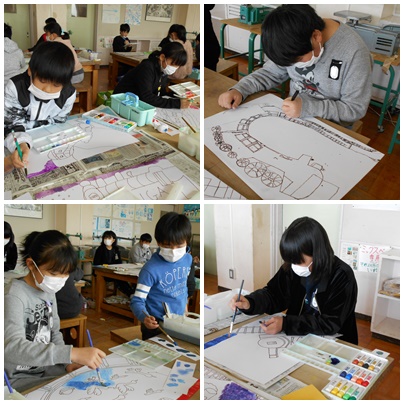 図工「物語から広がる世界」で物語の感動した一場面を絵にしてみました。絵の具の塗り方など細かな部分を変化させて、素敵な一枚に仕上げていきます。