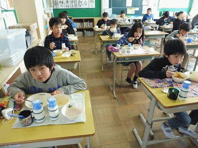 下の写真は5年2組の様子です。インフルエンザ予防のために、全員前を向いて静かに食べています。校内ではインフルエンザで欠席している児童は少なくなりましたが、他校や地域では流行しているところがあり、まだ油断はできません。
