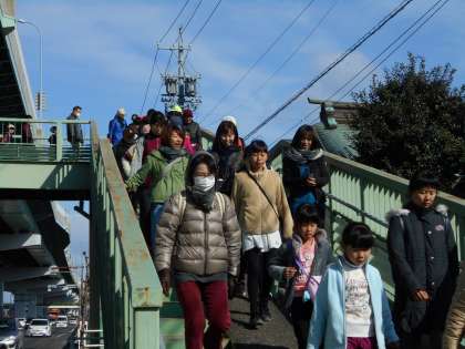 手がかじかむくらいの中でも、元気に歩く姿を見て、寒さが飛んでいきそうです。小さな子供からお年寄りの方まで、たくさんの参加がありました。