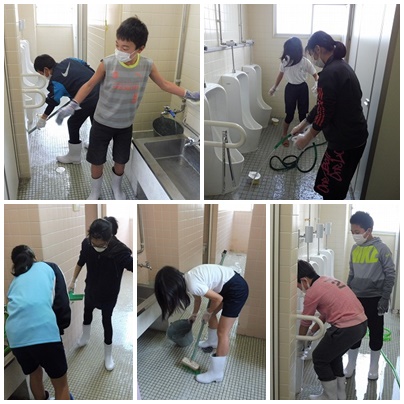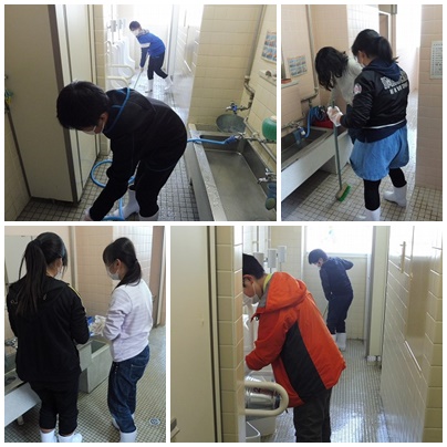 6年生奉仕活動1 公開日 2018/02/21 更新日 2018/02/21 6年生の部屋 6年生の皆さんが奉仕活動として、校内全てのトイレの掃除を分担してやってくれました。普段なかなか掃除ができない、便器や床の排水口の掃除までしてくれました。ありがとう。