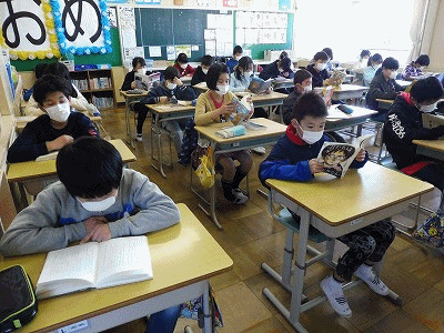 小木小学校では始業前の時間に読書に取り組んでいます。読書の効果はたくさんあると考えます。一日を落ち着いてスタートできること、活字離れを抑制できること、知識を蓄えたり情緒面の成長を促したりすることなど、様々です。