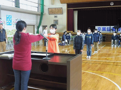 卒業式の練習の様子です。今日は、卒業証書を受け取る練習や「別れの言葉」の練習をしました。