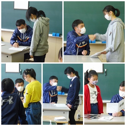明日が最後の登校日ですが、一日早く担任の先生から通知表を手渡されていました。通知表とともに、温かいメッセージと力強い握手も一緒に受け取っていました。