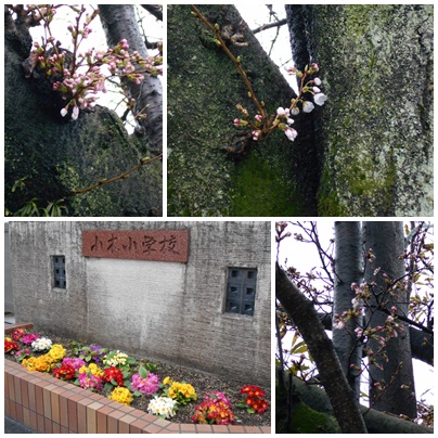 また、正門横の桜の花もちらほらと・・・・。