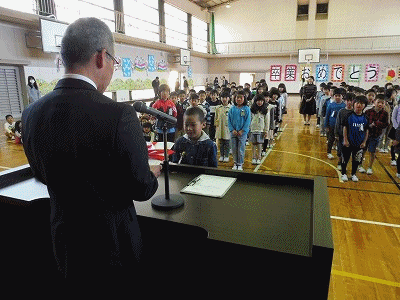 平成29年度修了式1 公開日 2018/03/23 更新日 2018/03/23 学校生活の部屋 今日が平成29年度最後の登校日となります。1年間の頑張りと成長を認めて、各学年の代表児童に修了証が校長先生より手渡されました。