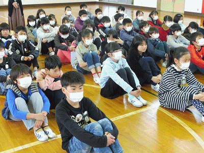 中臺先生からは、この1年間大きな事故がなく安全に登下校できてとてもよかった。これは、一人一人が交通安全に気をつけていたことと、パトロールボランティアさんや保護者をはじめ地域の皆さんが、朝早くから交差点に立ったりなどいろいろなところで協力していただいたおかげだよという話がありました。