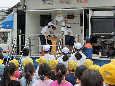 写真上:避難訓練時の起震車体験、消防学校の体験発表、運動会の様子 写真下:運動会の様子