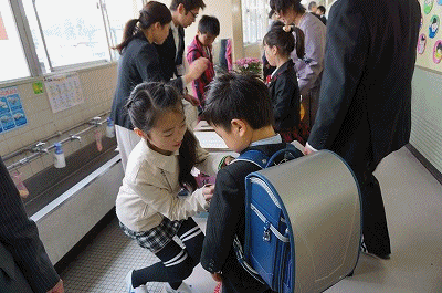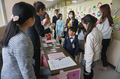 学級発表 公開日 2018/04/06 更新日 2018/04/06 1年生の部屋 どきどき、わくわくの学級発表の様子です。学級を確認したら、受付でお兄さんやお姉さんに名札をつけてもらい、教室に入ります。式が始まるまで教室で待っているときは、少し緊張した様子の子も見られました。