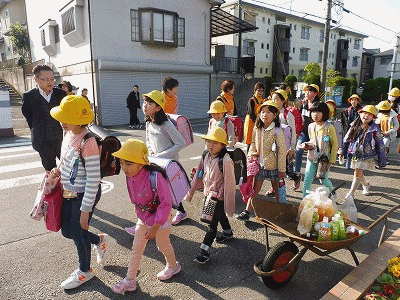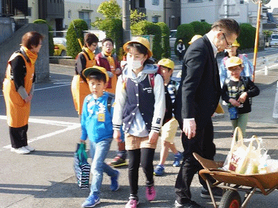 今日が今年度1回目となる廃食用油回収日でした。小牧市環境対策課の方をはじめ、小牧女性の会の皆さんにも協力していただき、あいさつ運動と共に回収活動をしていただきました。