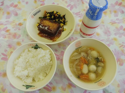 ごはん、吉野汁、生揚げのみそかけ、ひじきの和風マリネ、牛乳