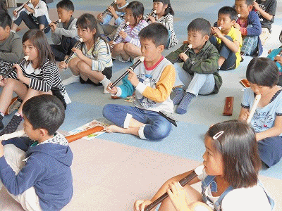 初めてのリコーダー(3年生) 公開日 2018/04/18 更新日 2018/04/18 3年生の部屋 校長先生にリコーダーの吹き方や持ち方の基本を教えていただきました。子どもたちは興味津々で、目を輝かせて話を聞いていました。やっぱり「餅は餅屋」ですね。
