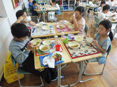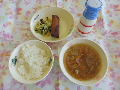 4月20日(金)の給食 公開日 2018/04/20 更新日 2018/04/20 2年生の部屋 こんだて ごはん、春雨スープ、春巻き、白菜の中華あえ、牛乳 写真は2年1組の様子です。準備するのも食べるのもずいぶん早くなりました。