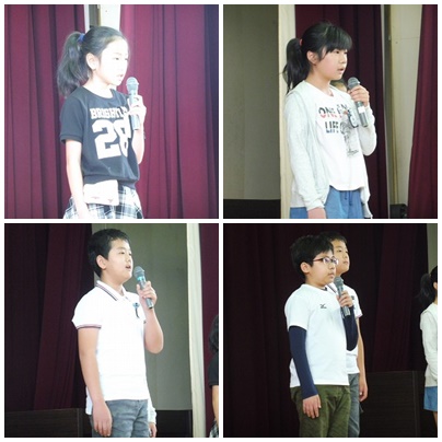 27日(金)の集会は、委員会委員長の所信表明でした。どの児童も全校児童の前で堂々とした発表ができました。すごく緊張したと思いますが、ステージ上で原稿を見ず落ち着いて発表できたことが、大きな自信につながることと思います。