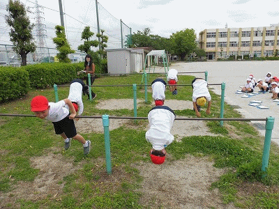 体育の授業(2年生) 公開日 2018/04/27 更新日 2018/04/27 2年生の部屋 1組は鉄棒を、2組は登り棒をやっていました。登り棒では、忍者のように身軽にひょいひょいとてっぺんまで登っていける子もいました。 写真上:2年1組の様子 写真中・下:2年2組の様子