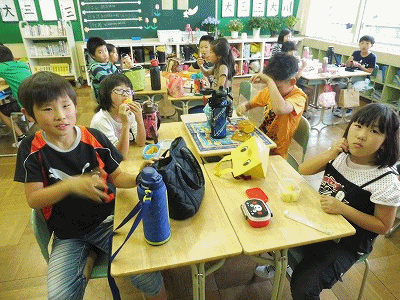 写真上:4年生の様子 写真下:6年生の様子