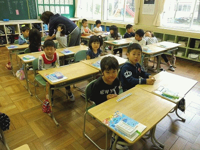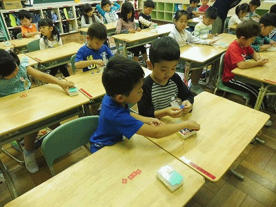 1年生では、算数セットのおはじきやカードを使って、先生が指示する数を並べたりしていました。